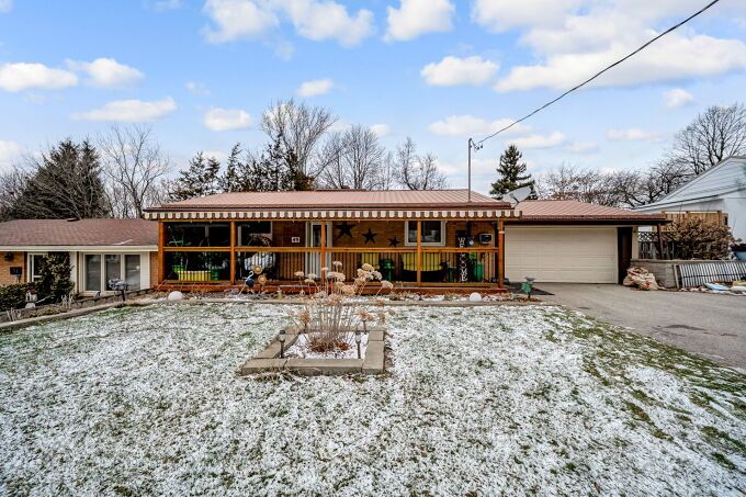 Nestled on a peaceful street within one of Simcoe's premier established communities, 49 Parker Drive is a move-in-ready bungalow that perfectly blends traditional charm with modern updates. This inviting residence features a 2+1 bedroom and 2-bathroom configuration, utilizing a classic layout that provides defined, cozy areas for relaxing, dining, and meal preparation. The main floor shines with polished hardwood flooring and a fresh coat of paint, while oversized windows ensure every room feels airy and bright. Home chefs will appreciate the kitchen's crisp white cabinetry, contemporary counters, and stainless steel appliances, all while enjoying a view of the private gardens. Below, the partially finished lower level serves as a flexible retreat for a home gym or media center, alongside a practical laundry area. The exterior is equally impressive, offering a sturdy deck and a fully enclosed backyard shaded by mature greenery-plus the added convenience of an attached garage and private drive. Located just minutes from top-rated schools and local parks, this property represents a fantastic find for those seeking a sense of community and lasting comfort.